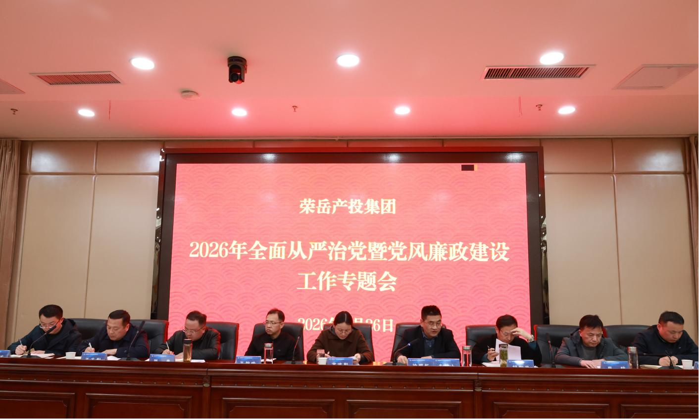 3月26日下午,荣岳集团召开2026年全面从严治党暨党风廉政建设工作专题会议,荣岳集团领导班子成员、三级公司部室副职(含)以上干部、全体党员参加会议。集团党委书记、董事长、总经理骆顺杞主持会议。县纪委监委派驻县政府办纪检组组长章洁勤到会指导。